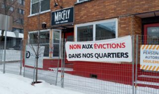 Lire +Une bannière portant l’inscription « Non aux évictions dans nos quartiers » a été installée près du bâtiment où se situait l’ancien bar MacFly sur la rue Caron dans Saint-Roch, là où…